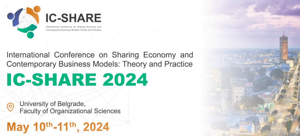 Sa velikim zadovolјstvom vas pozivamo na prvu Internacionalnu konferenciju o ekonomiji delјenja i savremenim poslovnim modelima: Teorija i praksa – “ IC-SHARE 2024”. Organizator ovogodišnjeg skupa je Univerzitet u Beogradu – Fakultet organizacionih nauka, u saradnji sa Univerzitet u Beogradu – Saobraćajni fakultet, i Univerzitet u Beogradu – Ekonomski fakultet, i uz podršku Fonda za nauku Republike Srbije.